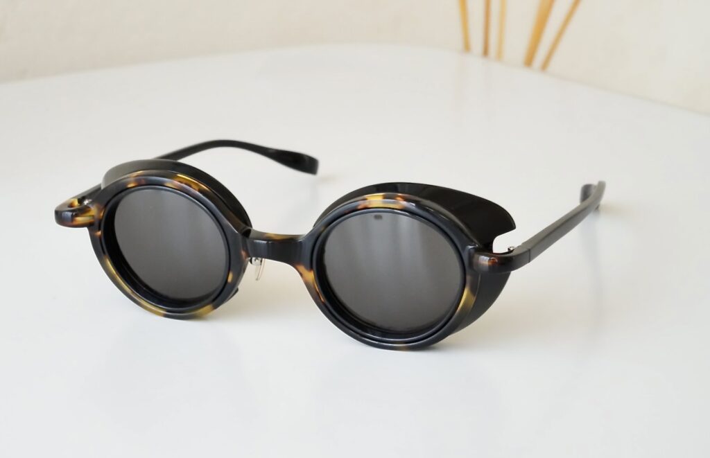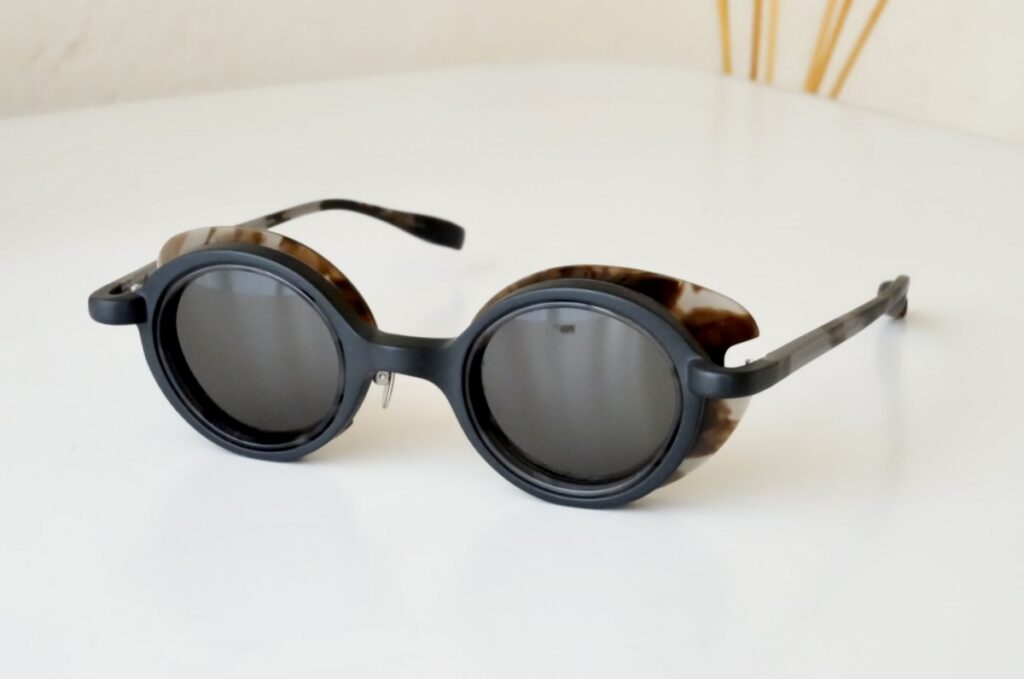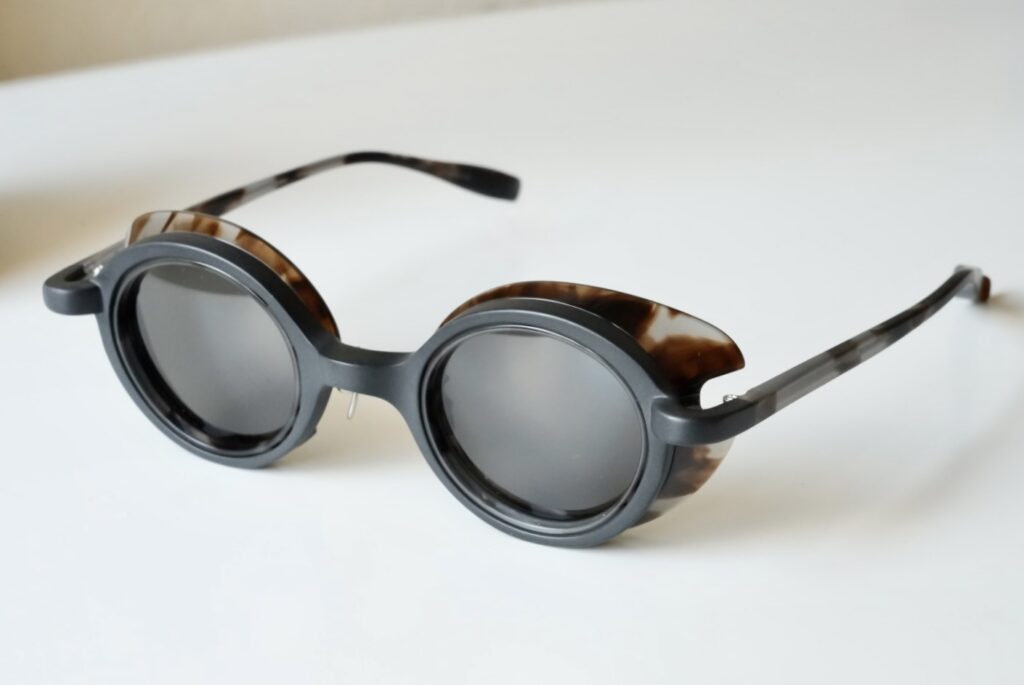 正面とサイドで全く雰囲気の違うサングラスです。